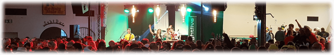 Dabei spielt Nightlive nach keiner vorgefertigten Setliste. Unsere außergewöhnliche Stärke liegt darin, uns individuell auf Euch einzustellen. Nach und nach steigern wir den Partyanteil und bringen Eure Feier zum kochen. In einer einzigartigen Art und Weise bringen wir die Musik mit Entertainment und purer Lebensfreude rüber. Wir wollen mit Euch tanzen, hüpfen, feiern und singen! Natürlich dürfen dabei die echten Karnevalshits nicht fehlen. Vom „Kölsche Jung“ über „Leev Marie“ bis zu „Hey Kölle“ ist alles dabei.
